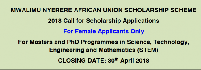 Mwalimu Nyerere African Union Scholarship Scheme For Masters and PhD Programmes in Science, Technology, Engineering and Mathematics (STEM) 2018